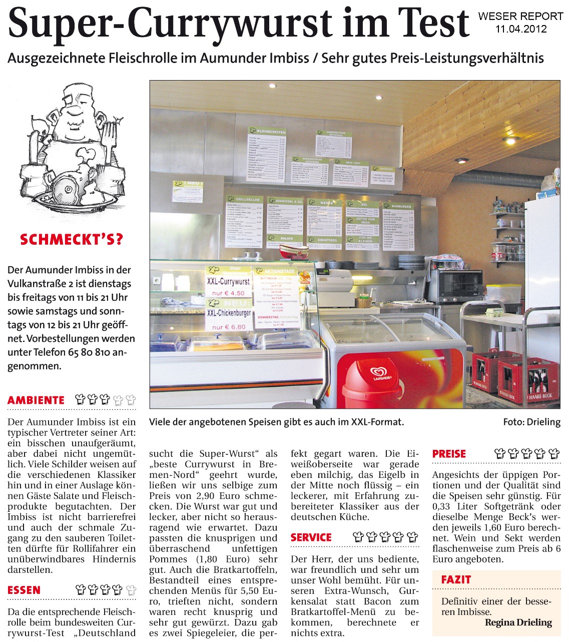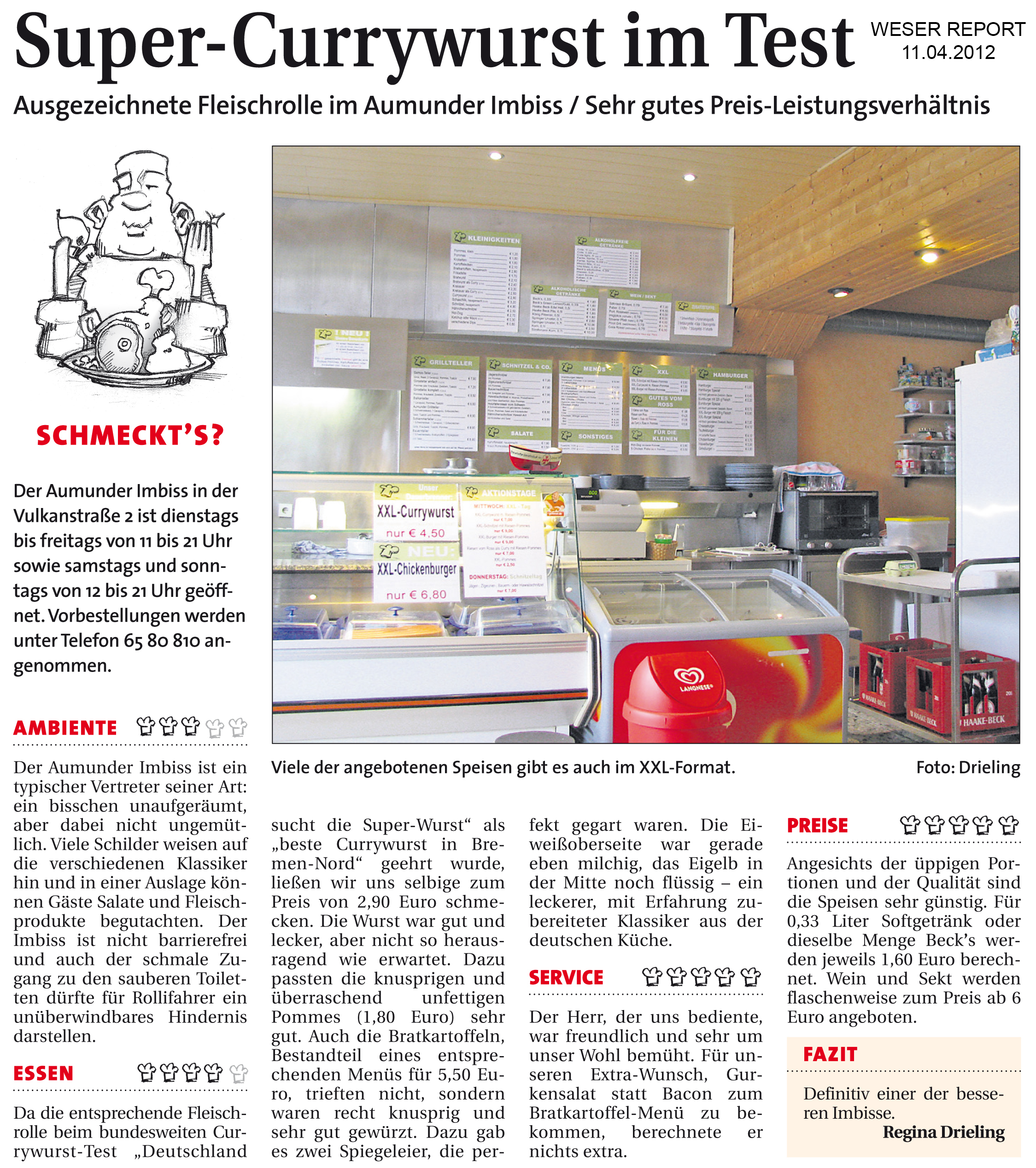 Gastrokritk aus dem WESER REPORT. Zum Vergrößern anklicken.