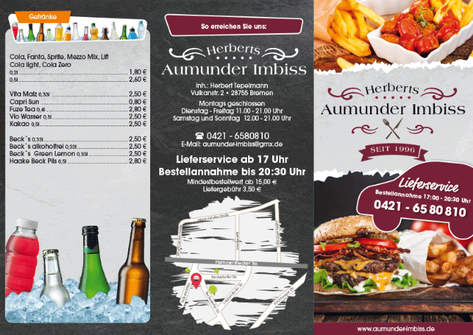 Seit über 20 Jahren versorgen wir Aumund und Umgebung mit Leckereien aus unserem Imbiss.